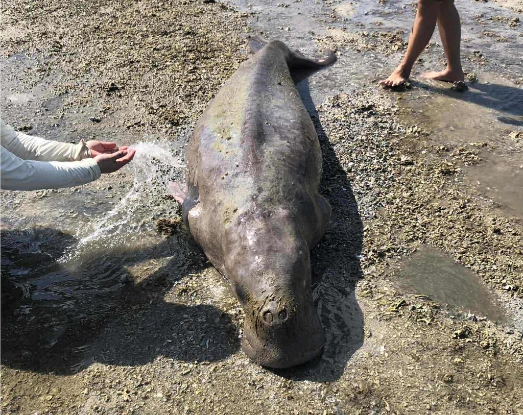 Con bò biển dài hơn 2 m, nặng gần 300 kg, khi được phát hiện đã rất yếu.