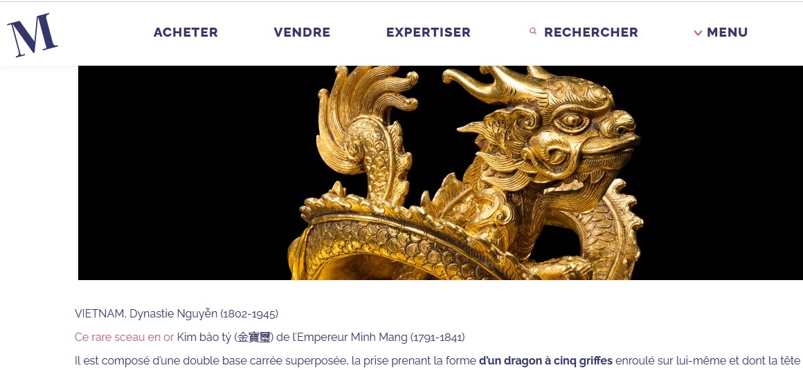 Ấn vàng “Hoàng Đế chi bảo” được đúc xong vào năm 1823, trải qua bao chìm nổi lưu lạc nơi xứ người, đã được trở về Việt Nam vào tháng 12.
