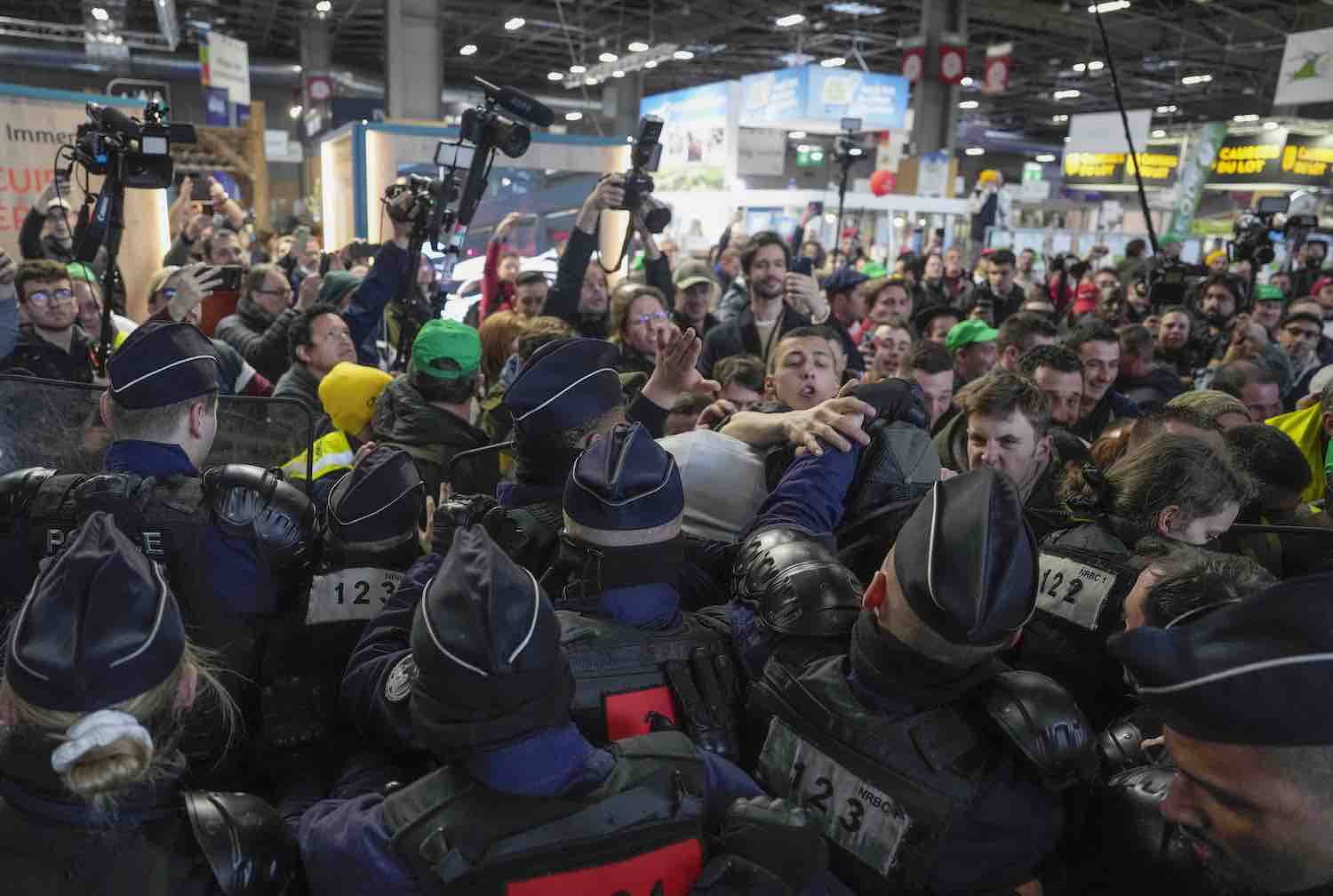 Ngày 24/2, một nhóm nông dân đã xông vào Triển lãm Nông nghiệp Paris để phản đối, bao vây Tổng thống Pháp Macron, và xảy ra ra đụng độ với cảnh sát.