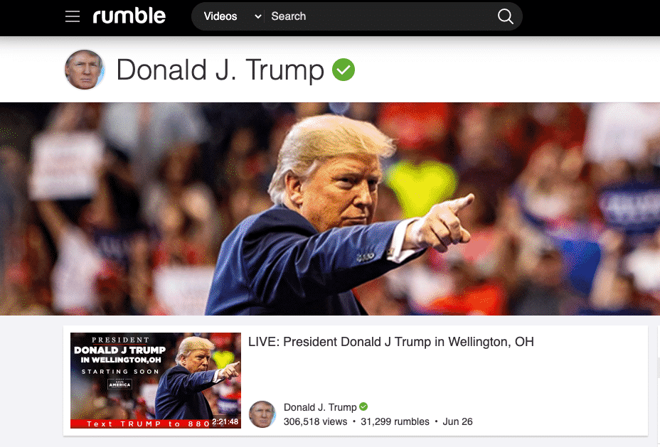 Cựu Tổng thống Donald Trump đã tạo một tài khoản chính thức trên nền tảng chia sẻ video cạnh tranh với YouTube là Rumble.