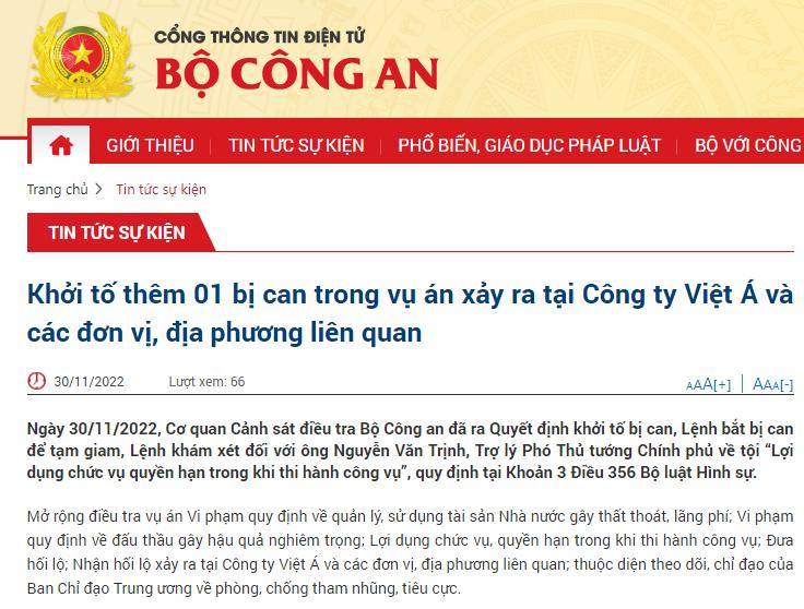 Ông Nguyễn Văn Trịnh, Trợ lý Phó Thủ tướng Chính phủ, bị bắt, khởi tố để điều tra về tội “Lợi dụng chức vụ quyền hạn trong khi thi hành công vụ”.