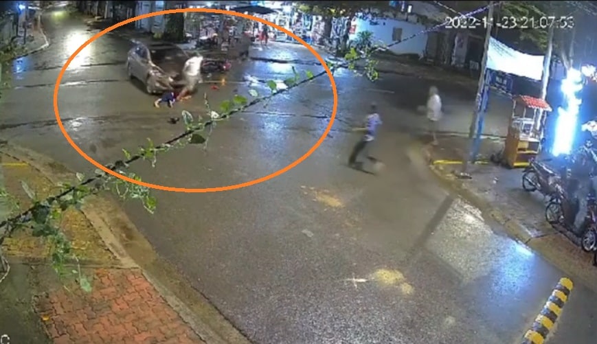 Sau cú va chạm, chiếc xe ô tô bất ngờ tăng ga cán ngang người nạn nhân đang nằm trước đầu xe.