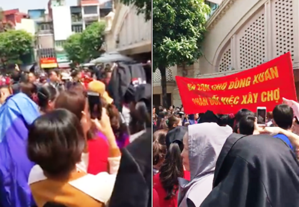 Hà Nội: Tiểu thương giăng biểu ngữ phản đối xây chợ Đồng Xuân