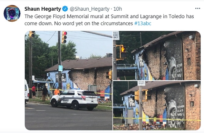 Bức tranh tường vinh danh George Floyd ở Ohio bị sét đánh vỡ tan