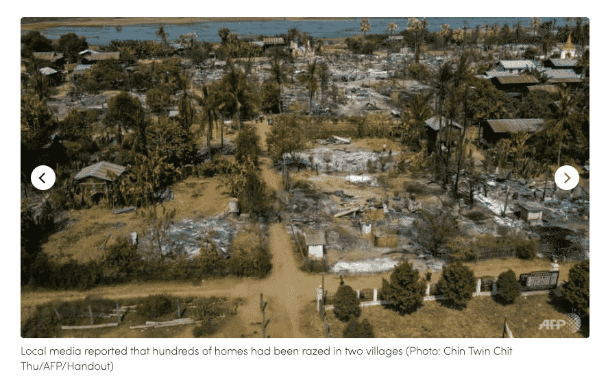 Dân làng Myanmar và các chiến binh chống đảo chính đã cáo buộc quân đội đốt hàng trăm ngôi nhà ở vùng tây bắc của đất nước.
