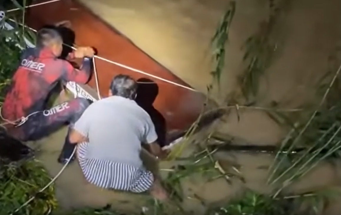 Quan tài bị lũ cuốn trôi trên sông ở Nha Trang