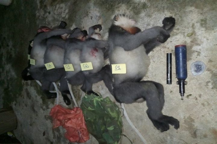 Kiểm lâm huyện Ba Tơ, tỉnh Quảng Ngãi hôm 18/10 cho biết vừa phát hiện 5 cá thể voọc chà vá chân xám bị một nhóm người đi săn trái phép bắn chết.