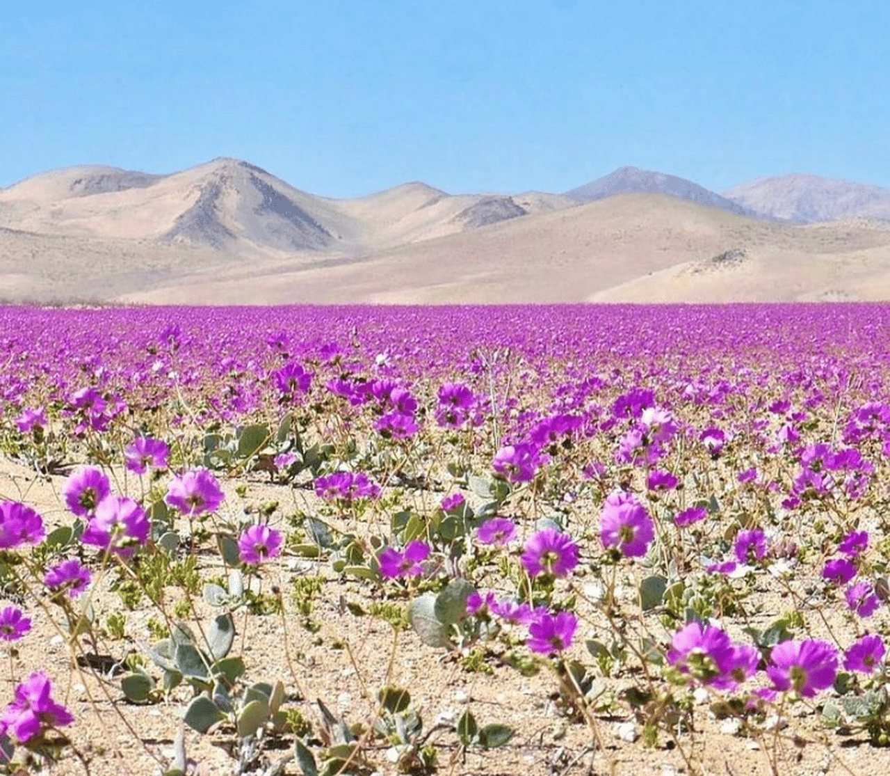 Khi gặp lượng mưa và nhiệt độ thích hợp, sa mạc Atacama sẽ được bao phủ bởi một cánh đồng hoa rực rỡ. Hiện tượng thú vị này vài năm mới xuất hiện một lần.