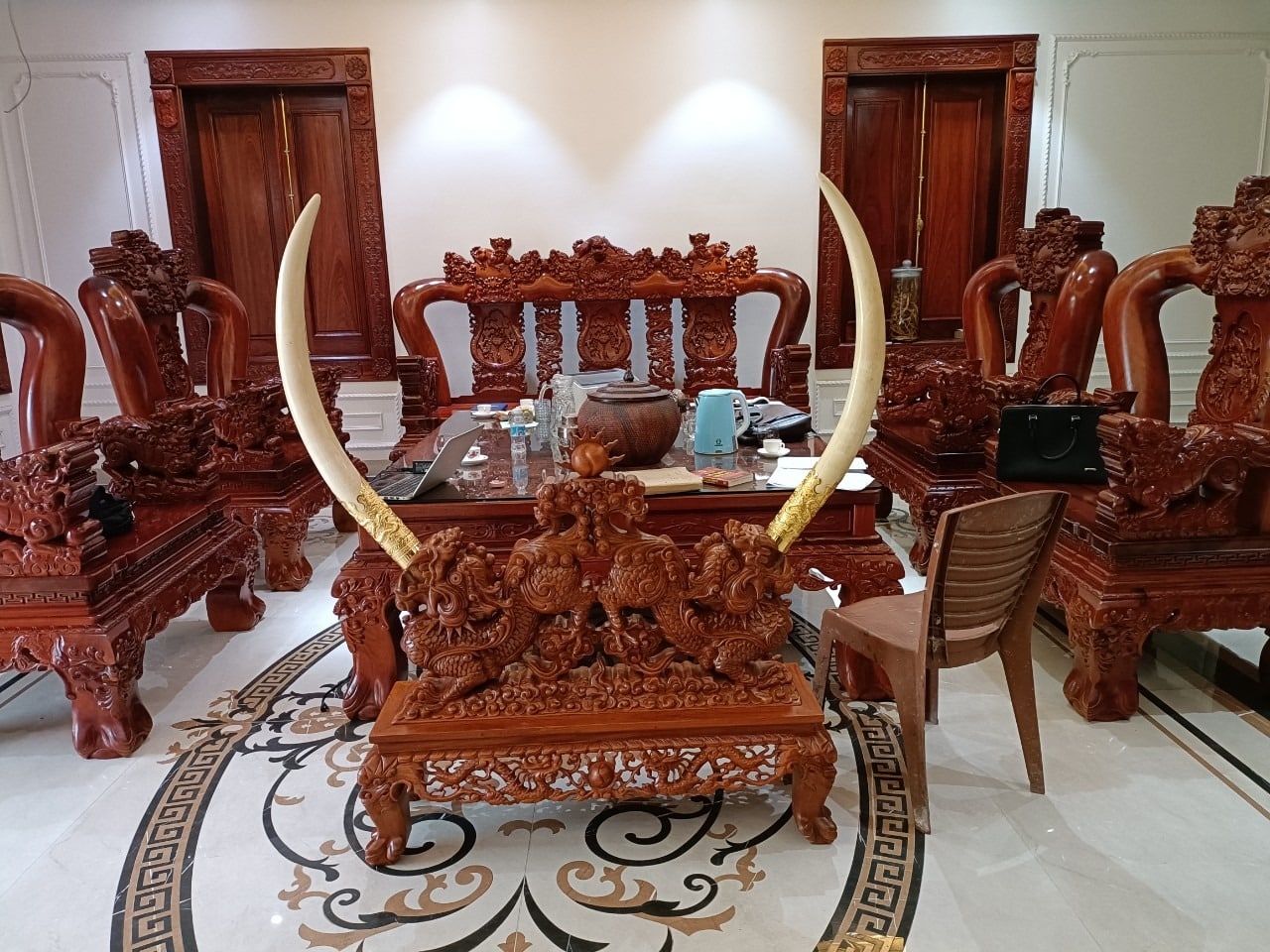 Phòng khách gia đình lưu giữ nhiều sản phẩm động vật hoang dã quý hiếm được con dâu của chủ nhà livestream trên mạng xã hội, một người dân sau khi xem được đã trình…