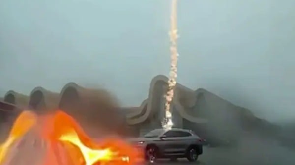 Xe điện TQ bị sét đánh liên tiếp 3 lần [VIDEO]