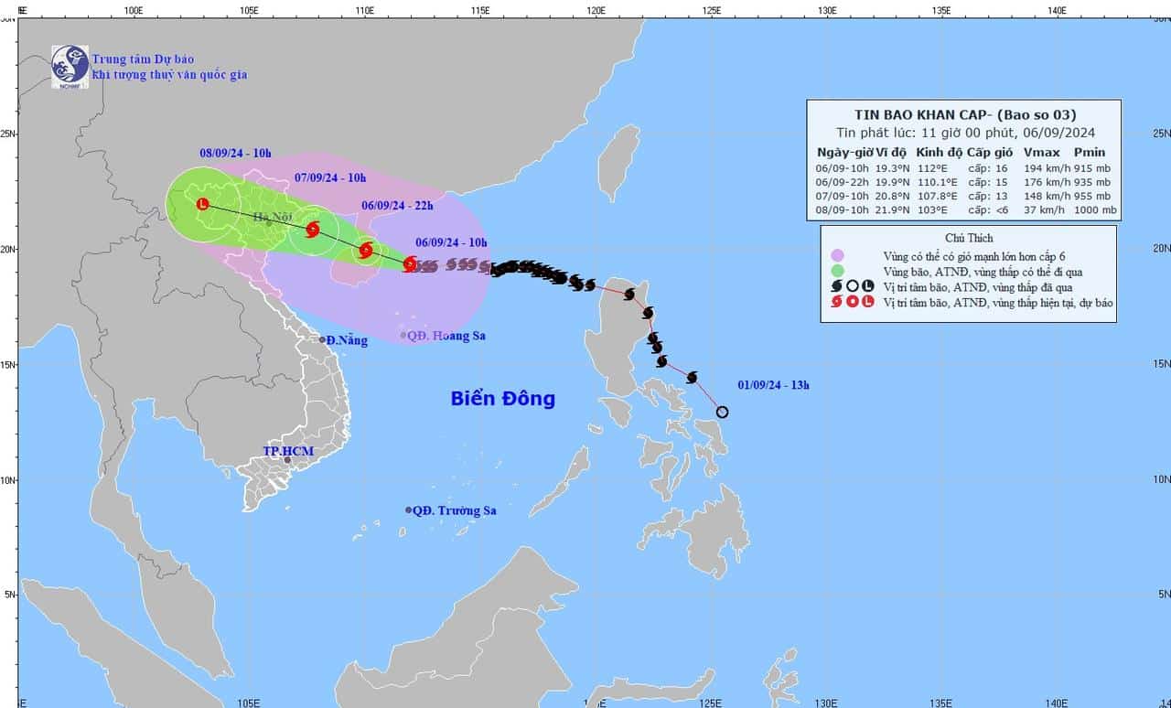 Siêu bão Yagi dự báo sẽ đổ bộ các tỉnh Quảng Ninh đến Thanh Hóa từ chiều 7/9 và hiện tại, bão Yagi vẫn giữ nguyên cấp 16, cách đất liền Quảng Ninh gần 600km.