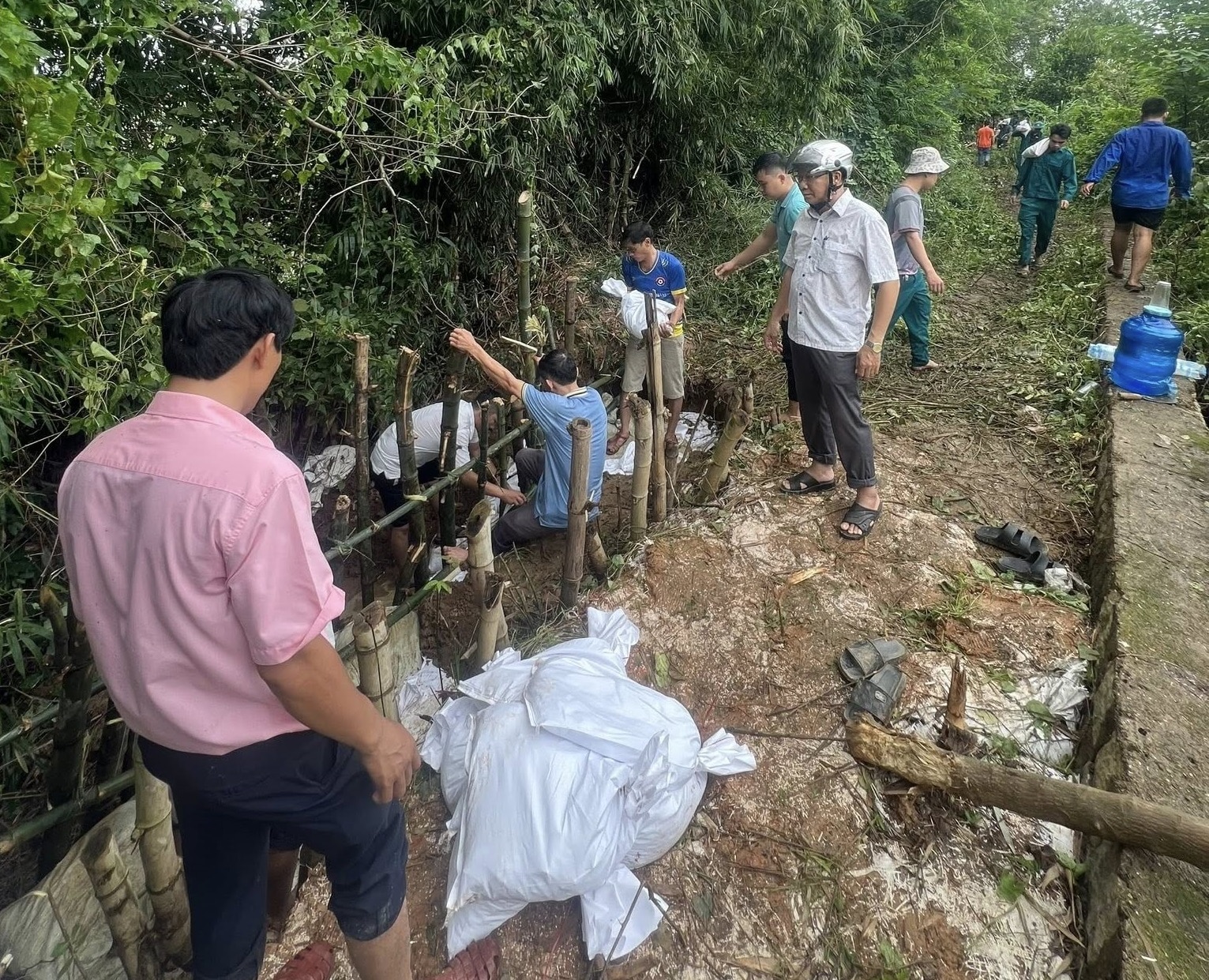 Trong đợt mưa lớn kéo dài, khoảng 10m đê sông Gò Chàm (tỉnh Gia Lai) bị sụt lún và rò rỉ nước, tiềm ẩn nguy cơ xói lở.