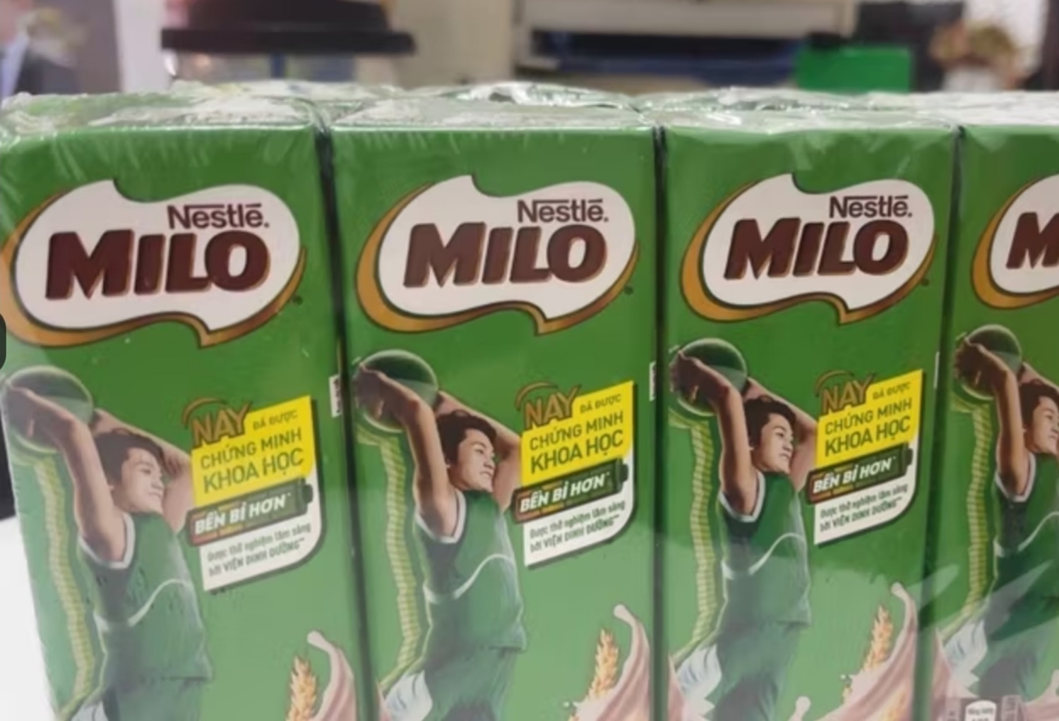 Cụm từ “được thử nghiệm lâm sàng bởi Viện Dinh dưỡng” xuất hiện trên bao bì và băng rôn quảng cáo sản phẩm “Sữa lúa mạch Milo của Nestlé Milo" của Nestlé Việt Nam.