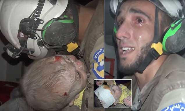 Người lính cứu hộ bật khóc khi phát hiện bé gái sơ sinh sống sót trong đống đổ nát ở Syria