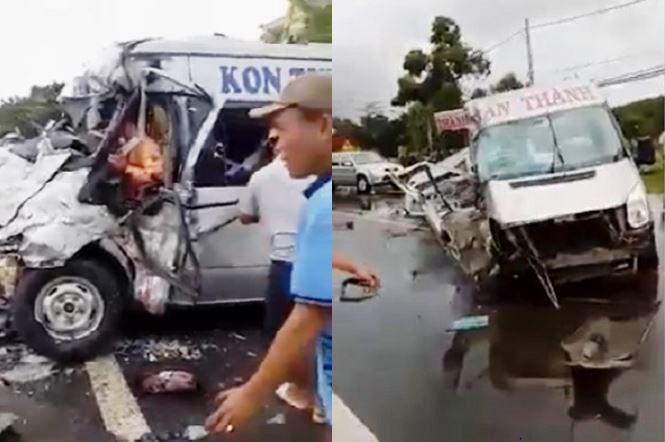 Kon Tum: 2 xe khách tông trực diện, 14 người thương vong