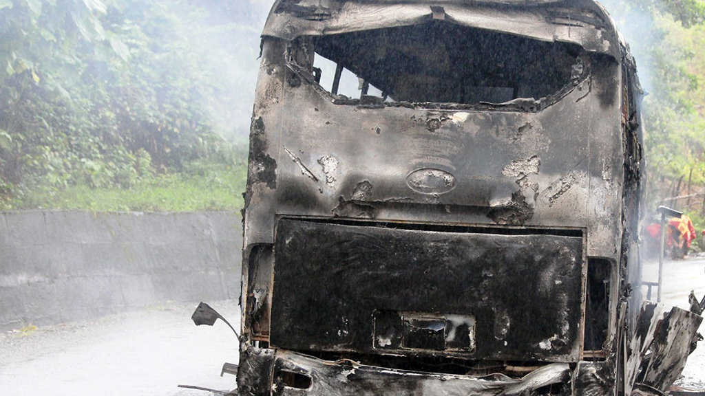 Xe khách bị thiêu rụi hoàn toàn, 7 người thoát nạn