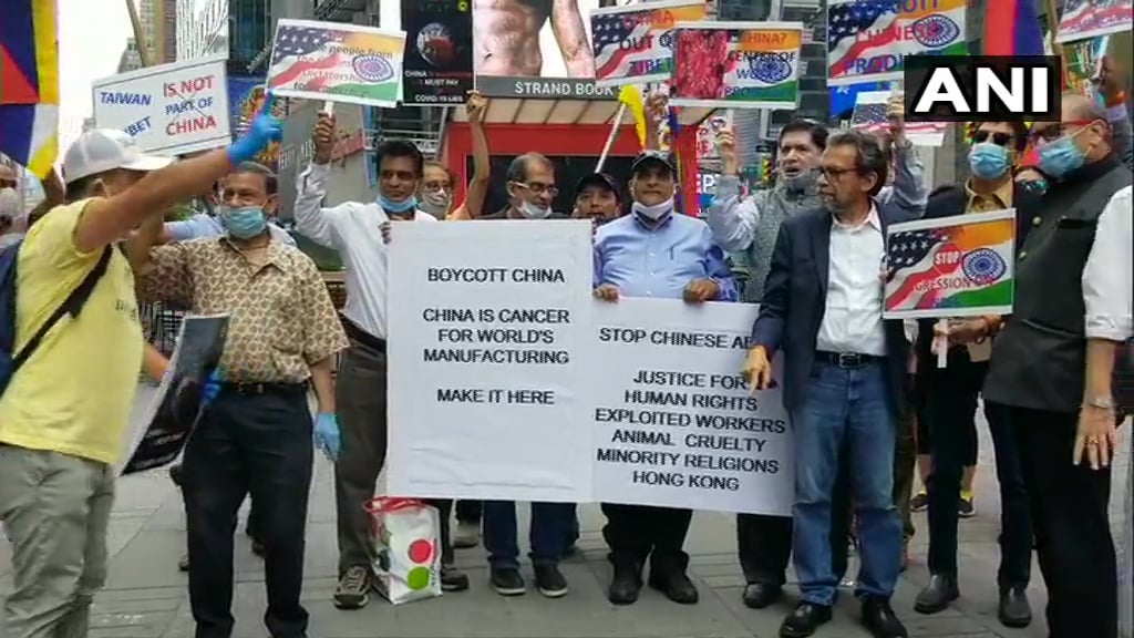 Đông đảo người Mỹ gốc Ấn đã tổ chức cuộc biểu tình mang tên "Tẩy chay Trung Quốc" tại Quảng trường Thời đại ở New York.