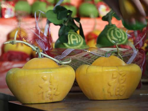Tặng quà Tết là một trong những nét đẹp truyền thống và bưởi hồ lô “Tài lộc”, dưa hấu vuông, dưa hấu thỏi vàng, dừa…