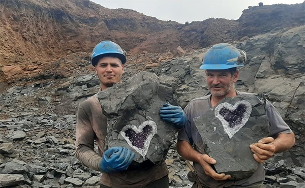 Cắt đá, thợ mỏ bất ngờ phát hiện vỉa thạch anh tím hình trái tim