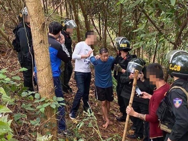 Đối tượng Hoàng Văn Chín bị bắt khi lẩn trốn trong rừng.