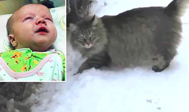 Chú mèo hoang sưởi ấm cho em bé bị bỏ rơi lạnh cóng trên đường