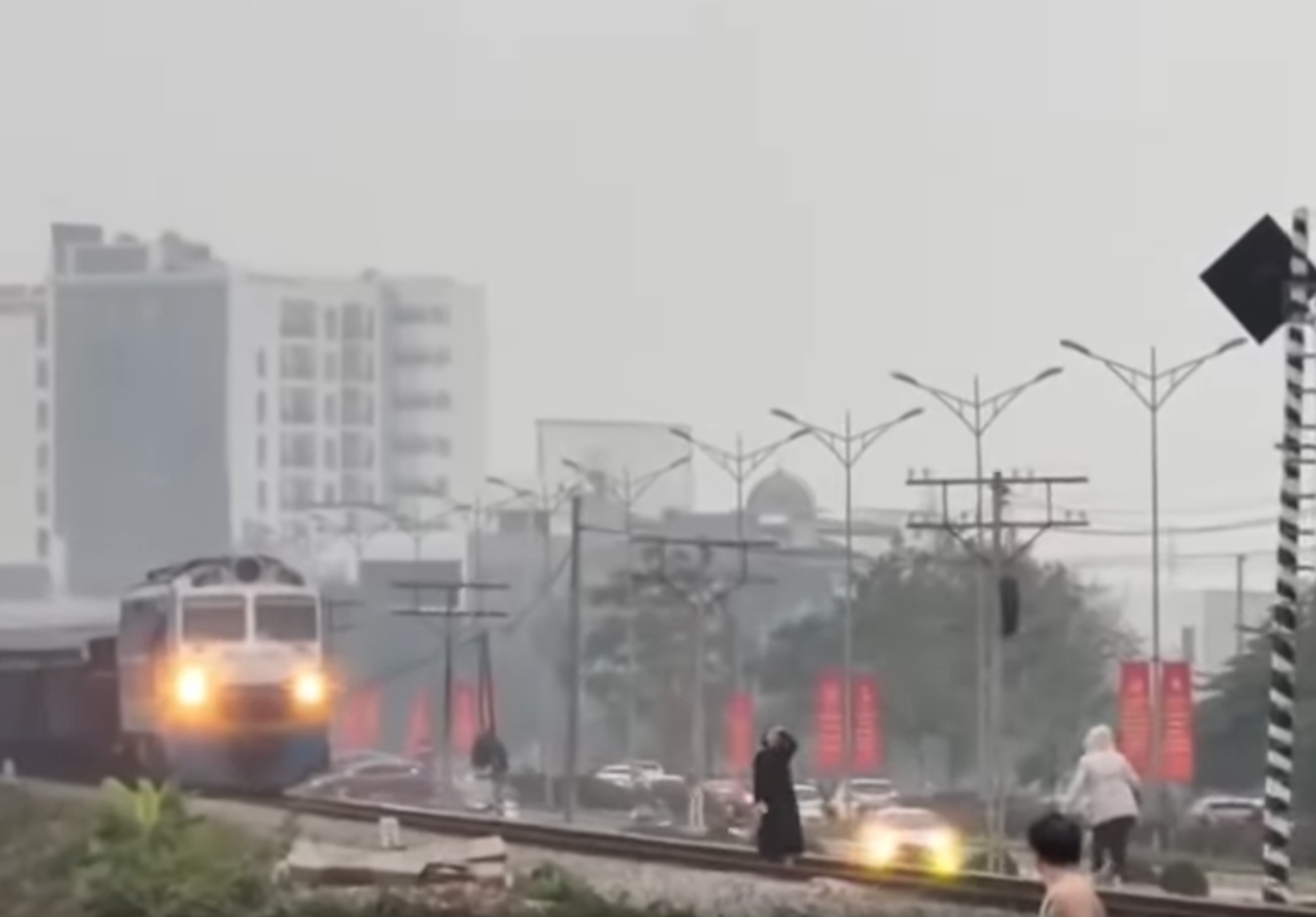 Vĩnh Phúc: Hai người phụ nữ tạo dáng trên đường ray khi tàu cách 10m