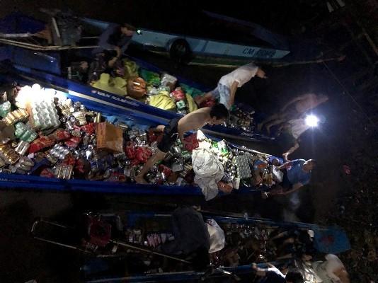 Nghe tiếng tri hô cứu tàu chở hàng bị chìm trên sông, gần 30 người không ngại nguy hiểm lao xuống cứu vớt hàng hóa trong đêm.