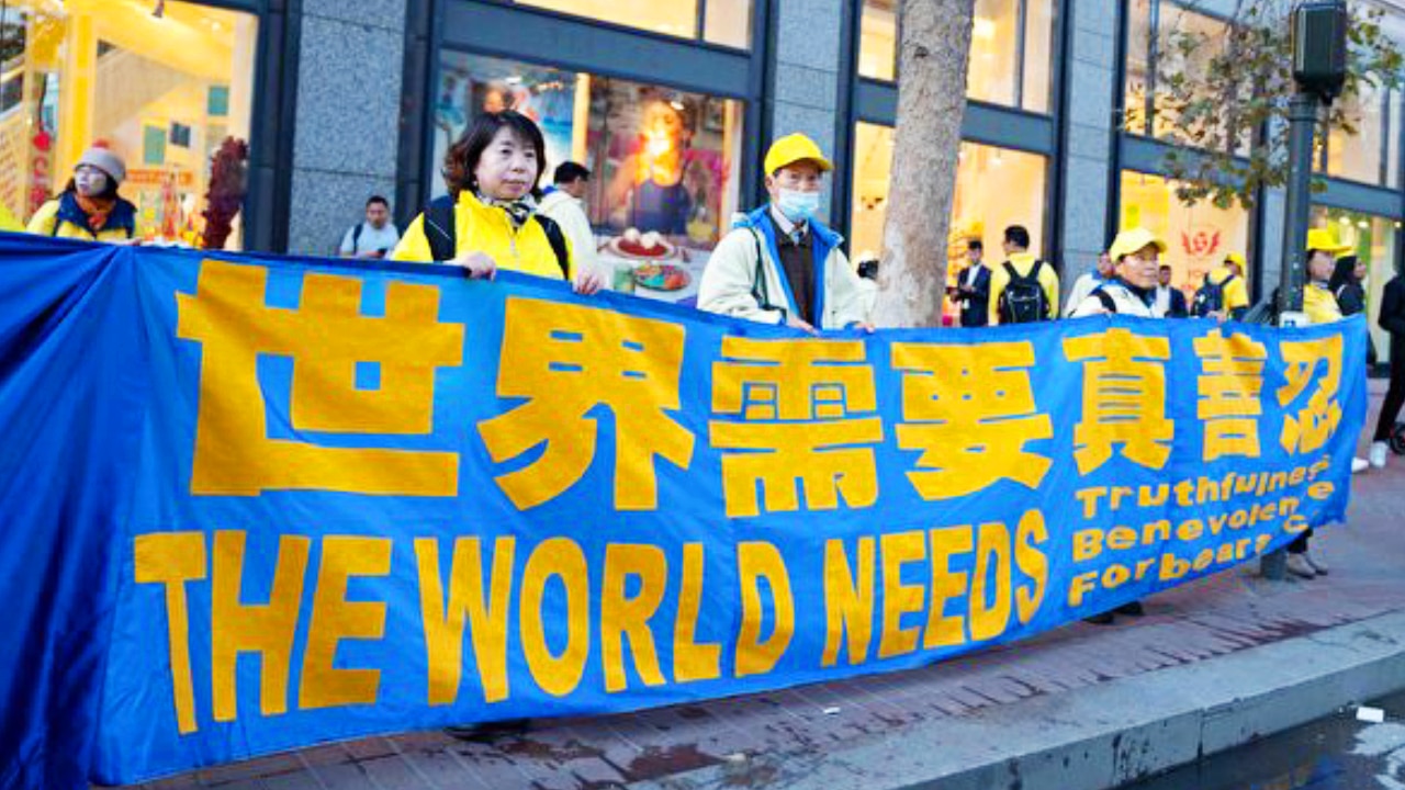 Các học viên Pháp Luân Công ở San Francisco đã thỉnh nguyện ôn hòa bên ngoài Trung tâm Moscone, nơi diễn ra Hội nghị Thượng đỉnh APEC.