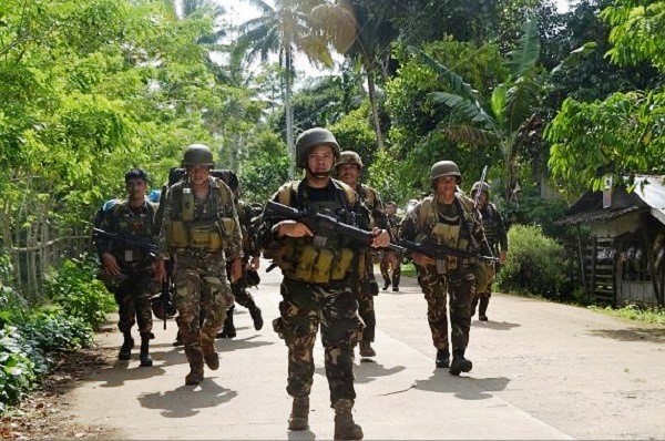 Binh lính Philippines vừa tìm thấy thi thể của hai thuyền viên Việt Nam bị chặt đầu tại thị trấn Sumisip trên đảo Basilan (miền Nam Philippines). Binh lính Philippines sau một cuộc chạm trán với nhóm khủng bố Abu Sayyaf vào tháng 8/2016. (Ảnh: Getty …