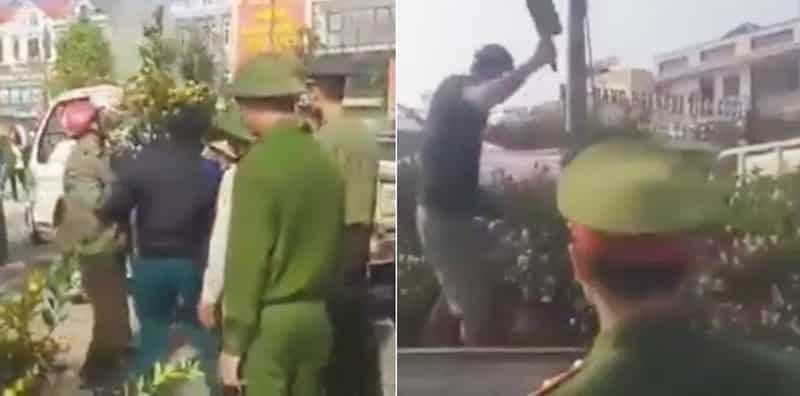 Người đàn ông nhảy lên xe công vụ chặt quất cảnh bị tịch thu