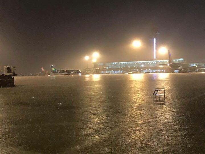 Sài Gòn mưa lớn, khu vực bãi đỗ của sân bay Tân Sơn Nhất bị ngập sâu