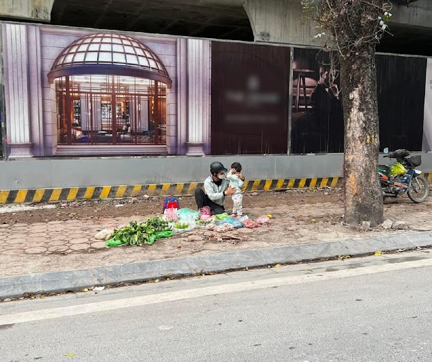 Bé 2 tuổi theo bố đi bán rau ở vỉa hè Hà Nội, chính quyền nói gì?