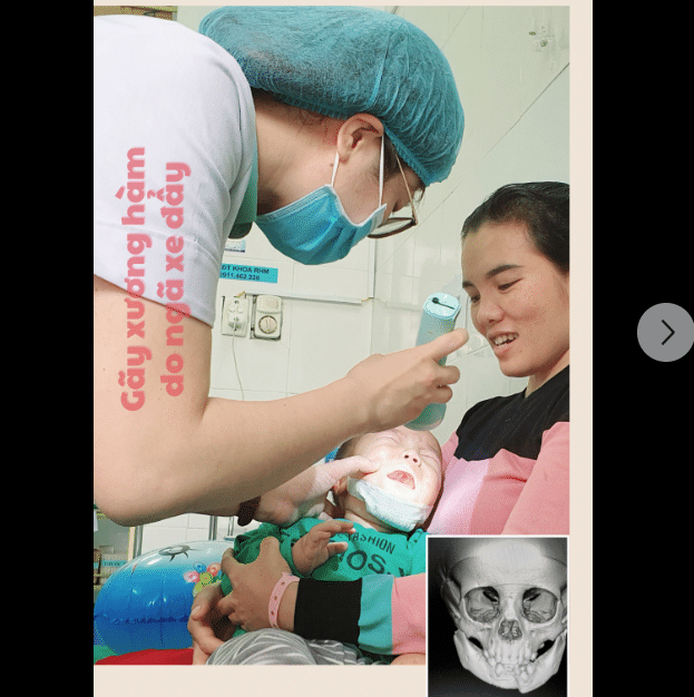 Bệnh nhi (10 tháng tuổi) bị tai nạn xe đẩy gãy xương hàm dưới đã được các bác sĩ tại Bệnh viện Sản Nhi Nghệ An phẫu thuật.