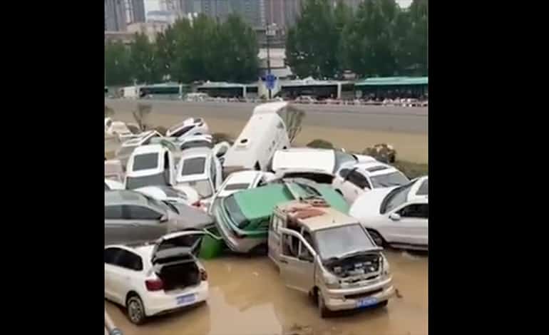 Thành phố Trịnh Châu, tỉnh Hà Nam, Trung Quốc đã hứng chịu mưa lớn trong nhiều ngày khiến khu vực này bị ngập lụt nặng nề