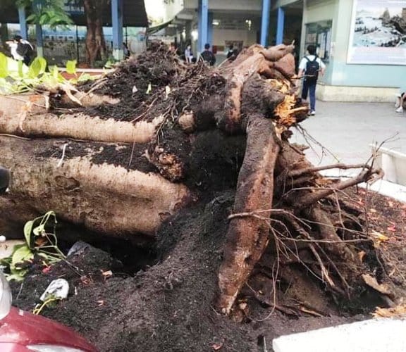 Cây đổ đè xuống 13 học sinh, một em đã tử vong