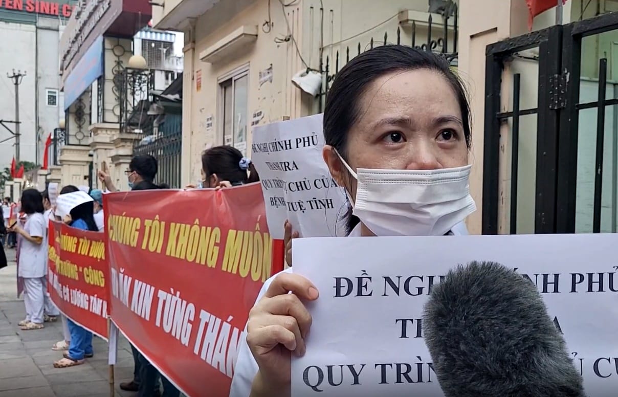 "Thời gian chờ đợi của chúng tôi đã quá lâu..." - chị Minh, nhân viên y tế của Bệnh viện Tuệ Tĩnh chia sẻ khi tiếp tục qua 2 tháng không lương.