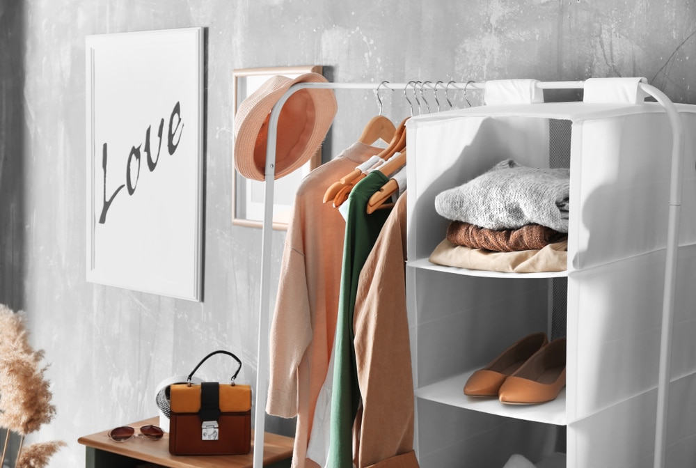 Nếu không muốn chiếm gần hết diện tích vì tủ quần áo, bạn có thể sử dụng một tủ quần áo mở, tiết kiệm không gian và thiết kế đẹp mắt.