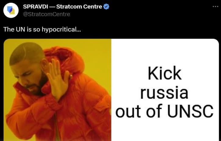 Ukraine đã sử dụng meme của nhạc sĩ nổi tiếng Drake để lên án tư cách thành viên thường trực của Nga trong Hội đồng Bảo an Liên Hợp Quốc.