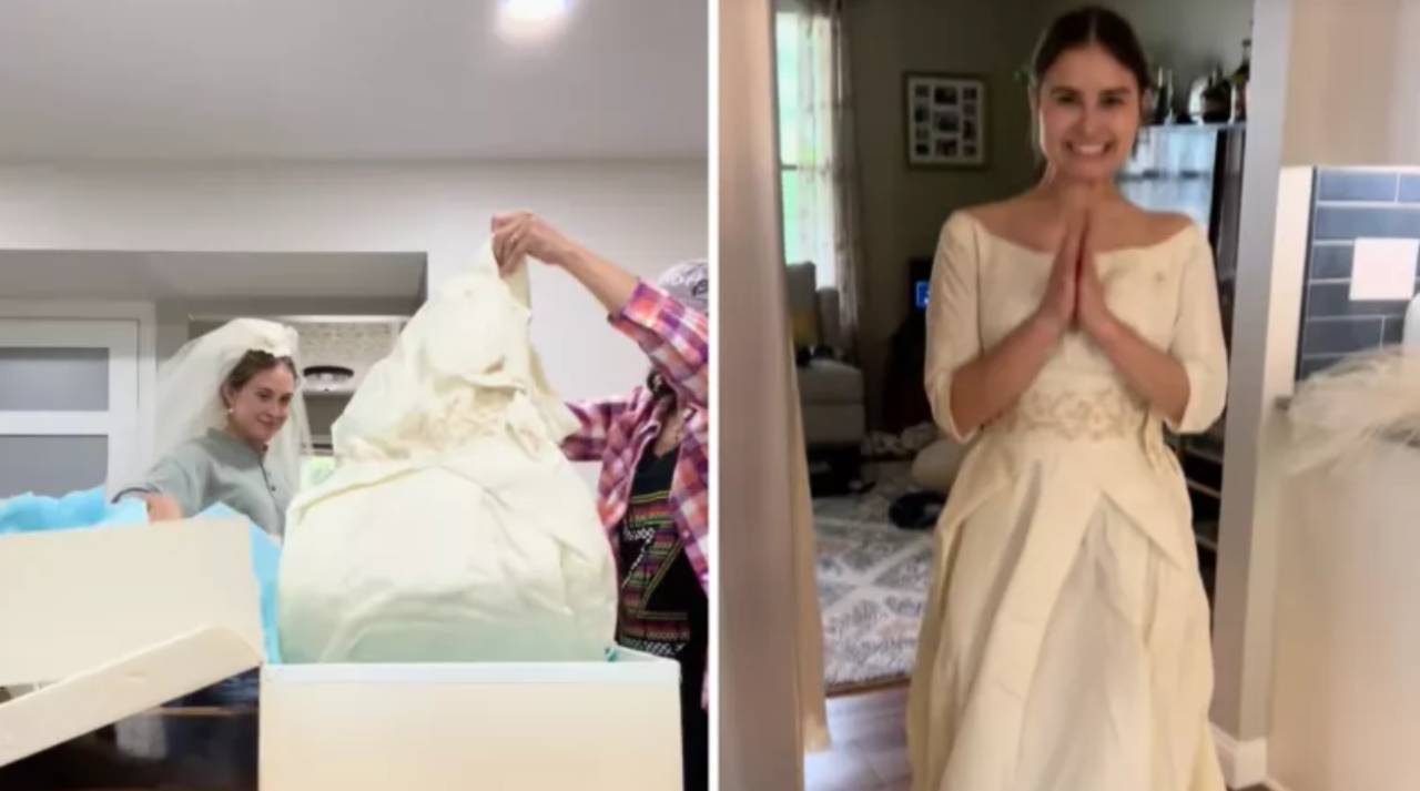 Một người phụ nữ đã vô cùng sửng sốt khi tình cờ nhìn thấy một chiếc váy cưới cổ điển tuyệt đẹp tại một buổi bán đồ cũ—và mua nó với giá chỉ 5 đô…