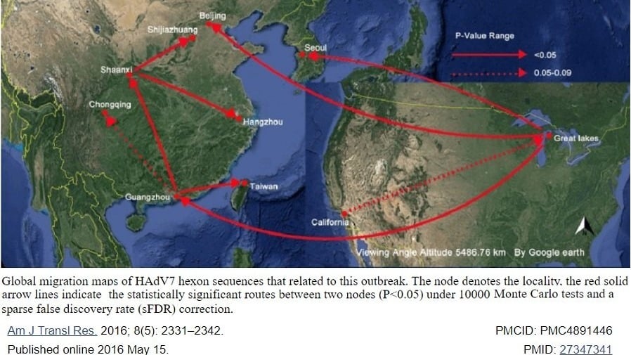 Ngày 31/5, trang Gateway Pundit tiết lộ vào đầu năm 2016, một sĩ quan ĐCSTQ đã vẽ bản đồ về con đường truyền virus đến Mỹ.