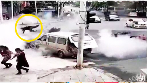 Một vụ nổ bất ngờ xảy ra trên một con đường ở Vũ Hán, Trung Quốc làm người qua đường và các phương tiện văng ra xa như phim hành động.