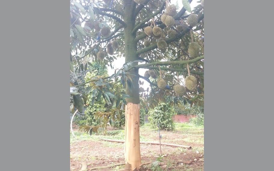 Vườn sầu riêng của một người dân ở huyện Krông Búk đang gần thu hoạch đã bị kẻ gian lẻn vào cạo lớp vỏ thân cây, đang có nguy cơ chết dần.