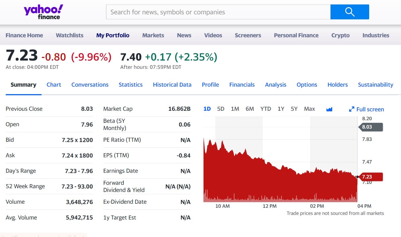 Giá đóng cửa ngày 9/10 của mã chứng khoán VinFast (VFS) về còn khoảng hơn 7 USD/cổ phiếu, mất hơn 90% so với mức đỉnh hơn 1 tháng trước.
