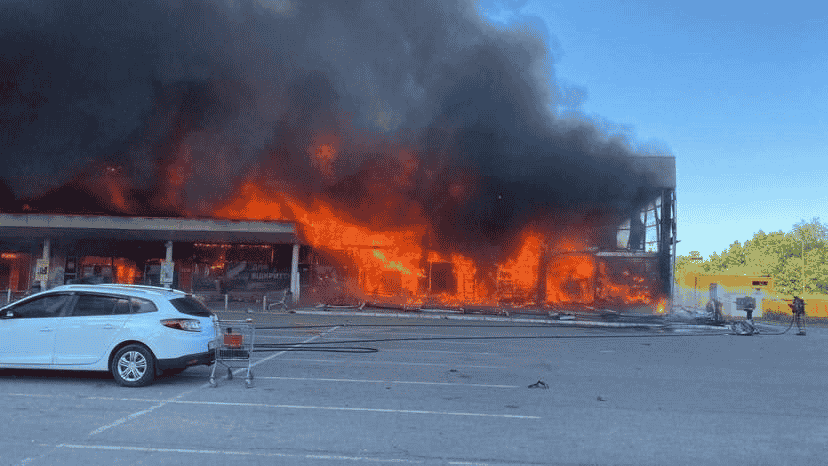 Bộ Quốc phòng Nga cho biết tên lửa của họ đã tấn công một kho vũ khí gần đó chứa vũ khí của phương Tây, khiến kho này phát nổ khiến ngọn lửa lan sang trung tâm thương mại gần đó.