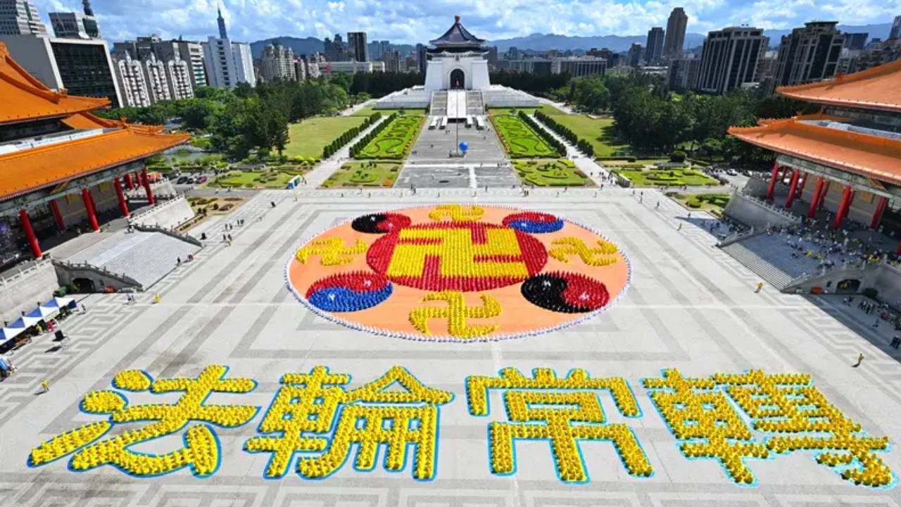 Ngày 18/10, hơn 5.000 học viên Pháp Luân Công từ Đài Loan, Hoa Kỳ, Canada, Nhật Bản, Hàn Quốc, Hồng Kông và các nơi khác đã xếp Đồ hình của Pháp Luân Công và dòng chữ ‘Pháp Luân thường chuyển’ bằng tiếng Trung tại Quảng trường Tự do ở Đài Bắc. Cảnh tượng này thật phi thường và ngoạn mục, đồng thời truyền tải vẻ đẹp của Pháp Luân Đại Pháp đến xã hội Đài Loan.