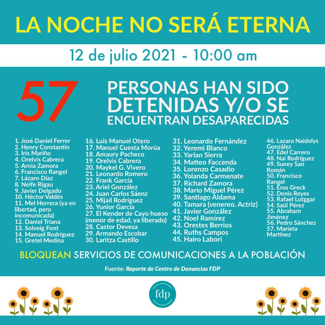 Reporte actualizado con detenidos y/o desaparecidos, hasta las 10 am#SOSCuba pic.twitter.com/Fre0Do52qF