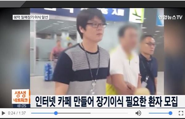 Tháng 9/2016, người cầm đầu đường dây môi giới cho người Hàn Quốc đến nhiều bệnh viện của Trung Quốc cấy ghép nội tạng là một người mang họ Kim (nam, 43 tuổi), đã từ Trung Quốc trở về Hàn Quốc tự thú, tiết lộ nội tình đen tối của việc các bệnh nhân Hàn Quốc đi Trung Quốc tiến hành cấy ghép nội tạng phi pháp.