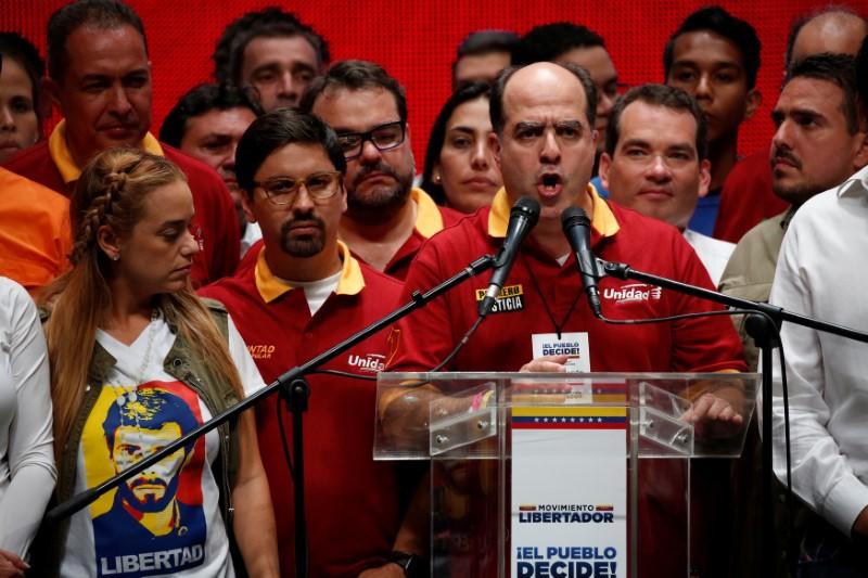 Ông Julio Borges lãnh đạo phe đối lập phát biểu sau khi có kết quả cuộc trưng cầu dân ý ngay đêm Chủ Nhật (16/7)