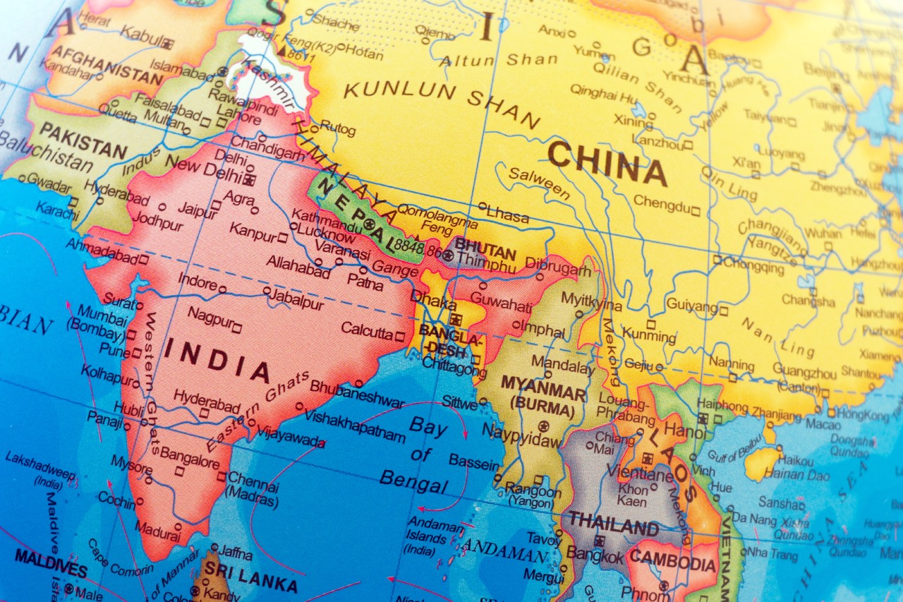 Bản đồ thể hiện Ấn Độ và Trung Quốc. (Nguồn: Shutterstock)