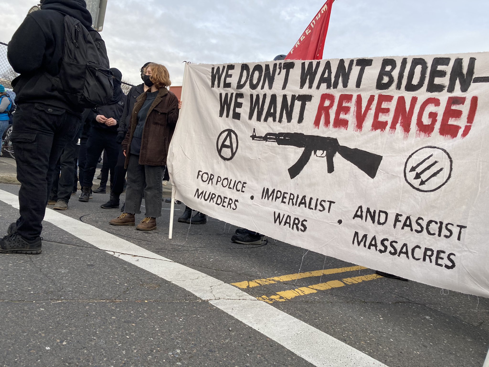 Sau đó, họ tuần hành qua các đường phố, đốt cờ Mỹ và hô vang rằng chương trình nghị sự của ông Biden không đáp ứng kỳ vọng của họ.